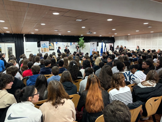 Monsieur Etienne Champion, Recteur de l’académie de Versailles, Monsieur Guillaume Boudy, Maire de Suresnes, Monsieur Frédéric Fulgence, Directeur Académique des Hauts-de-Seine, les chefs d’établissements, les enseignants et les presque 200 élèves présents ont pu assister aux échanges passionnants et aux lectures préparées par leurs camarades, notamment celle très émouvante de "la rose Blanche" mouvement de résistance Allemand lue à deux voix par les élèves du collège et leurs correspondants Allemands.