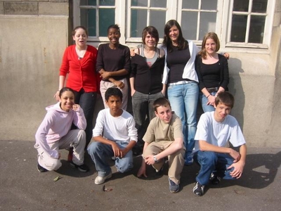 Hayat, Dakala, Lola, Jessica, Emeline, Maroua, Tojo, Adrien et Alexandre (x2), élèves de 3 ème 3 option informatique au cours de l’année scolaire 2003/2004 et Christophe Rigal leur professeur de Technologie.