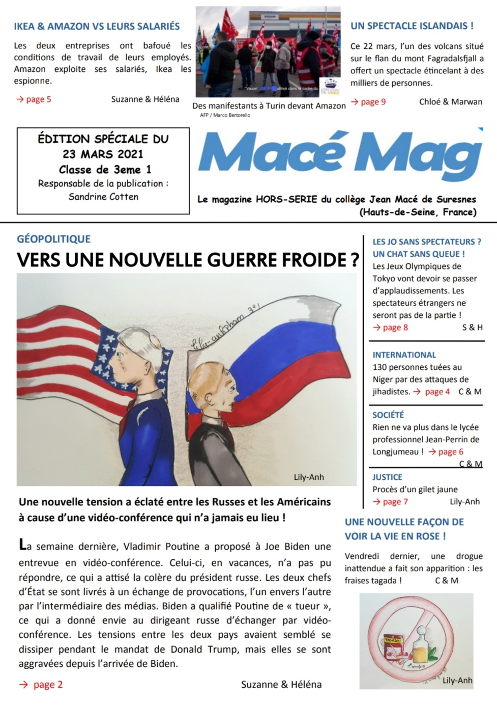 Dans le cadre de la semaine de la presse et des médias à l'école 2021, les élèves de la 3eme 1 ont participé mardi 23 mars au Concours des UNES organisé par le CLEMI Créteil.